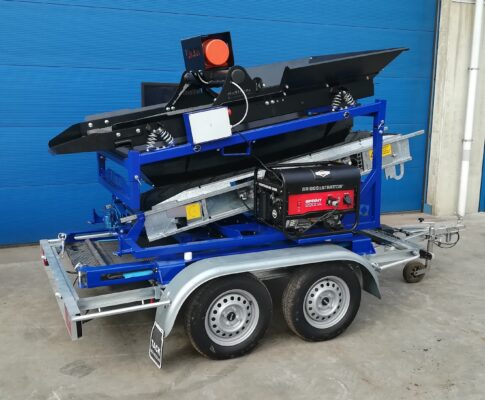De Mini Screener kan ook in 1 geheel, samen met de transportband van 2m van het chassis gehaald worden.